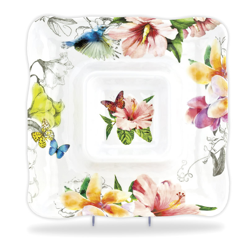 A coleção inteira é repleta de produtos lindos como bandejas, guardanapos, petisqueiras e muitas outras peças lindas com esse tema todo colorido, com flores, borboletas, beija-flor, tudo perfeito para servir pratos principais, petiscos, acompanhamentos, saladas, frutas, deixando suas mesas dos próximos meses mais floridas e alegres!