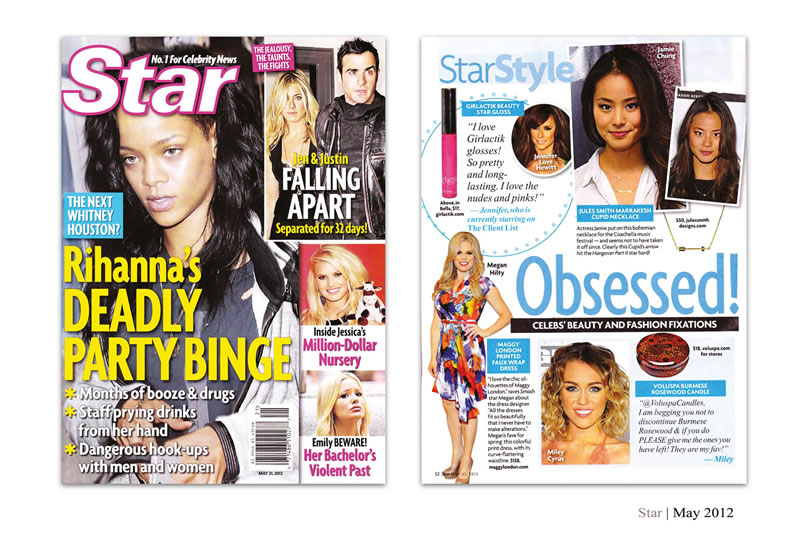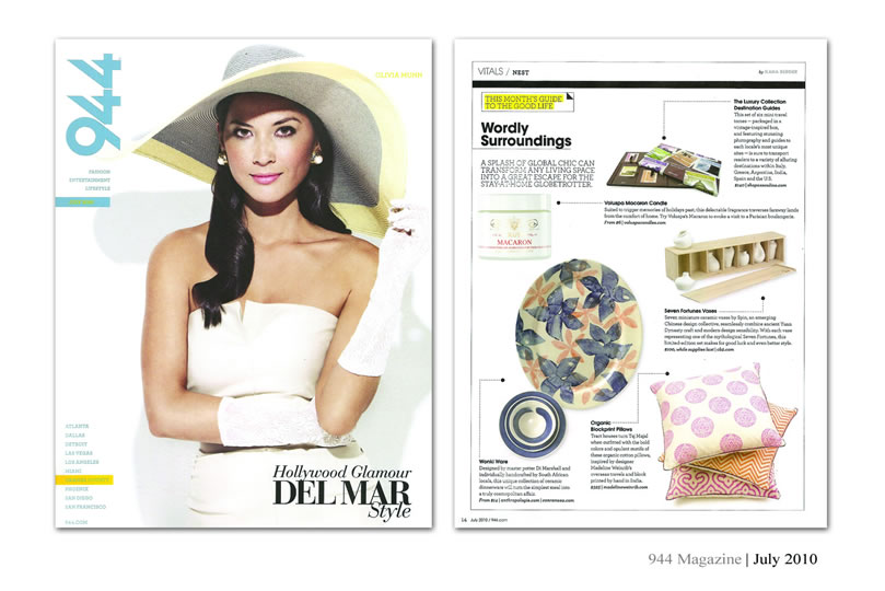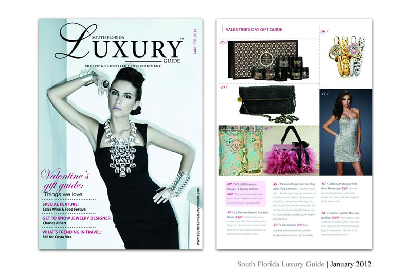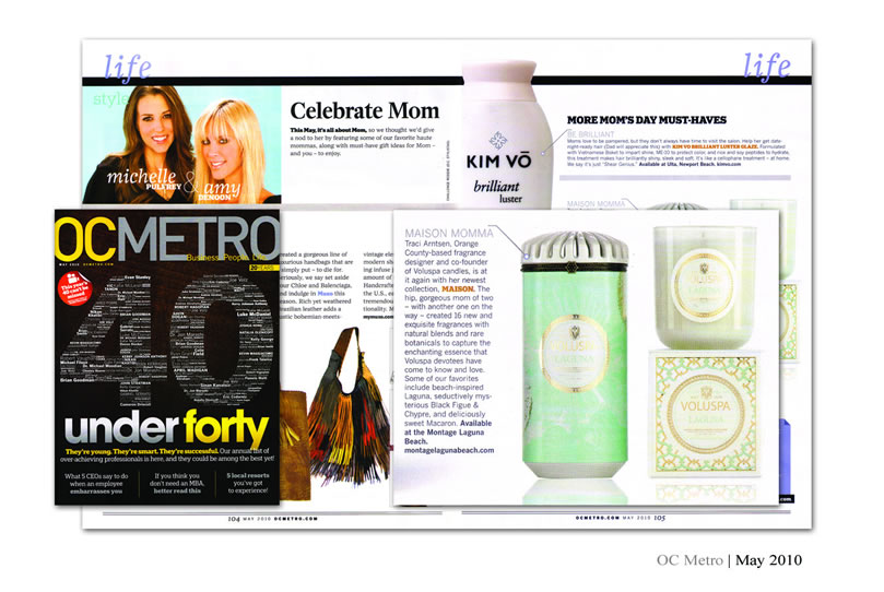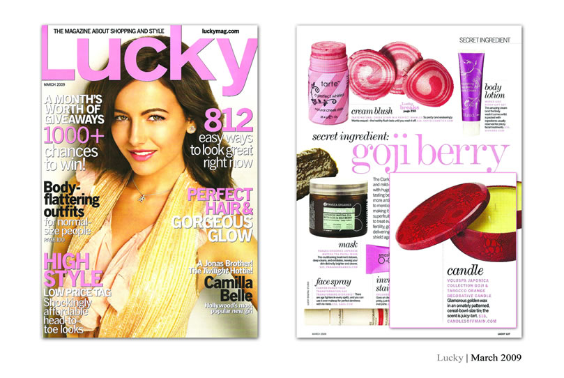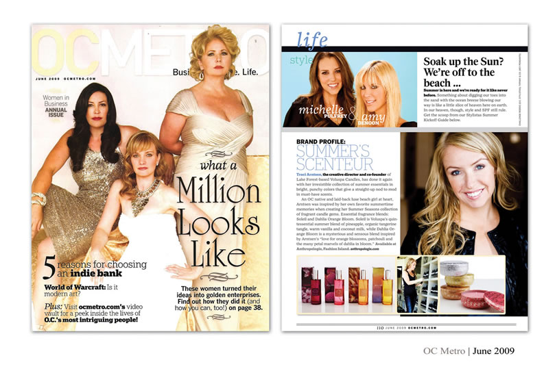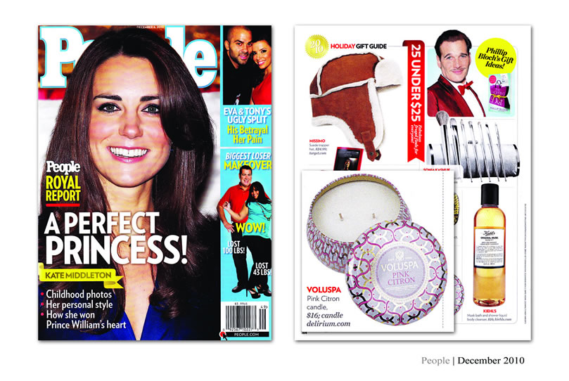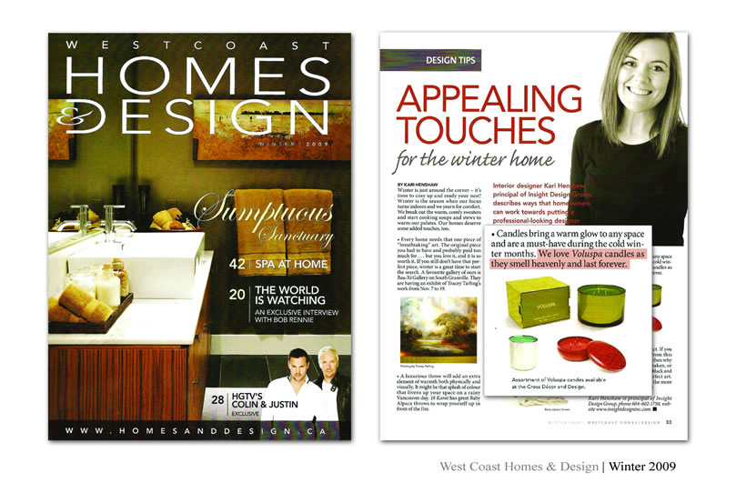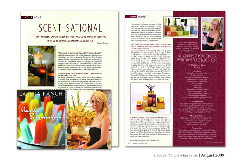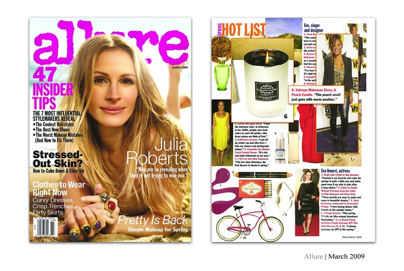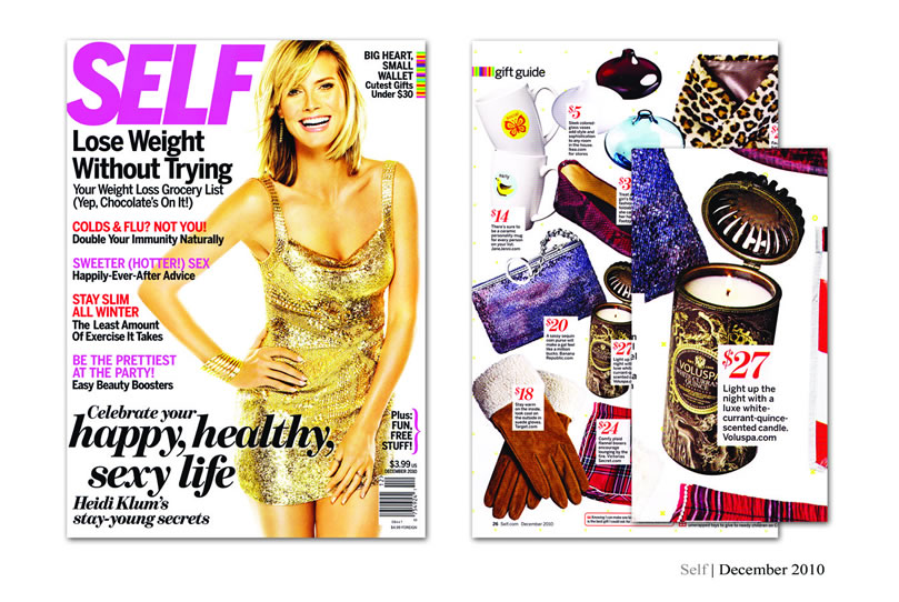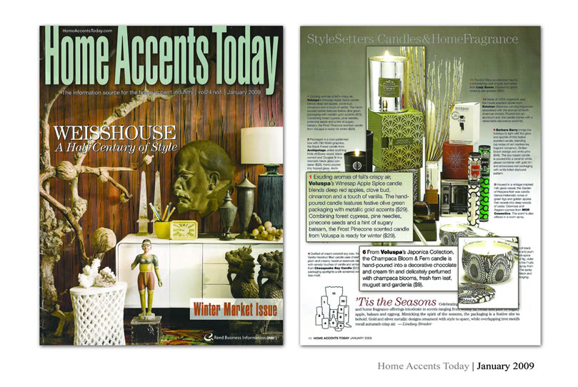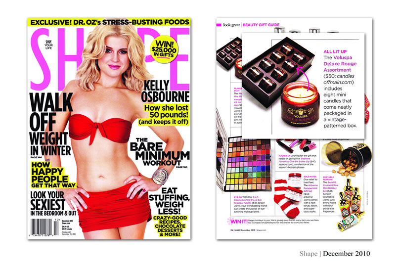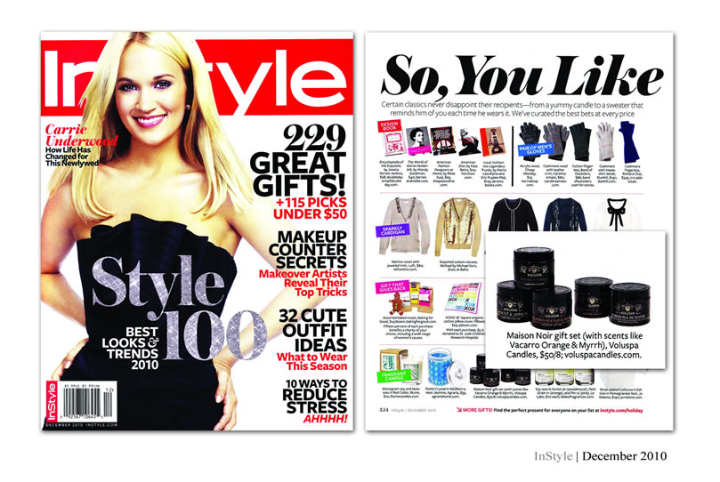 Abaixo estão algumas aparições de produtos e da marca Voluspa na imprensa americana entre 2009 e 2013. São revistas de celebridades, comportamento, decoração e estilo de vida que dão destaque às velas Voluspa.